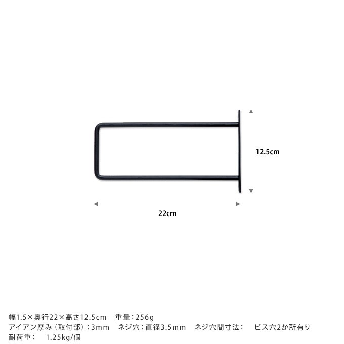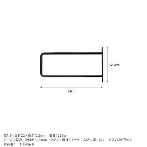 サイズ/重さ:幅1.5×奥行22×高さ12.5cm 重量:256g アイアン厚み(取付部):3mm ネジ穴:直径3.5mm ネジ穴間寸法: ビス穴2か所有り