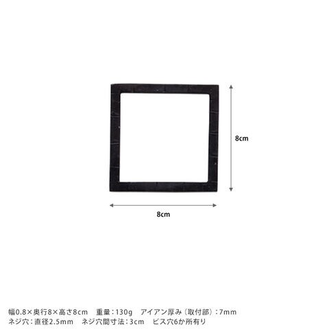 サイズ/重さ:幅0.8×奥行8×高さ8cm 重量:130g アイアン厚み(取付部):7mm ネジ穴:直径2.5mm ネジ穴間寸法:3cm ビス穴6か所有り