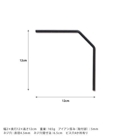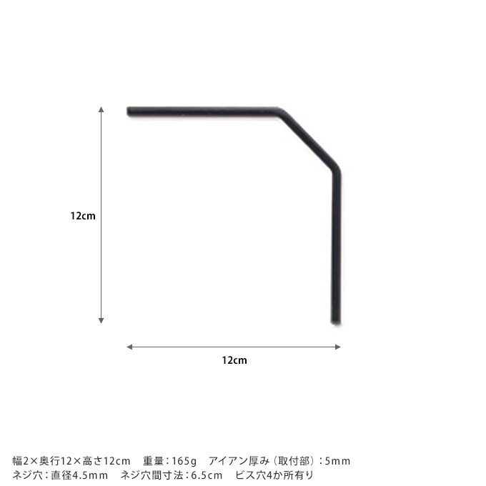 サイズ/重さ:幅2×奥行12×高さ12cm 重量:165g アイアン厚み(取付部):5mm ネジ穴:直径4.5mm ネジ穴間寸法:6.5cm ビス穴4か所有り