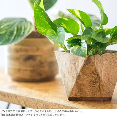 備考:インテリアを北欧風に、ナチュラルテイストに仕上げる天然木の鉢カバー。自然な木目が植物とマッチするのでとってもおしゃれです。