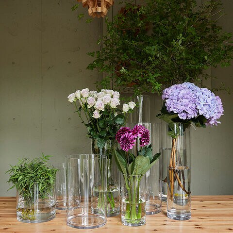 備考:割れない新素材、ポリカーボネートを使ったフラワーベース。ガラスに比べ軽くて丈夫!(ガラスの250倍の強度)ご自宅の他、イベント会場で沢山のお花を入れておくのにとても便利です。また気泡もほとんど入っておらずクリスタルのような輝きも特徴の一つです。