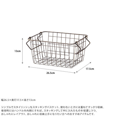 スタッキング バスケット アイアン S 26.5×17.5cm