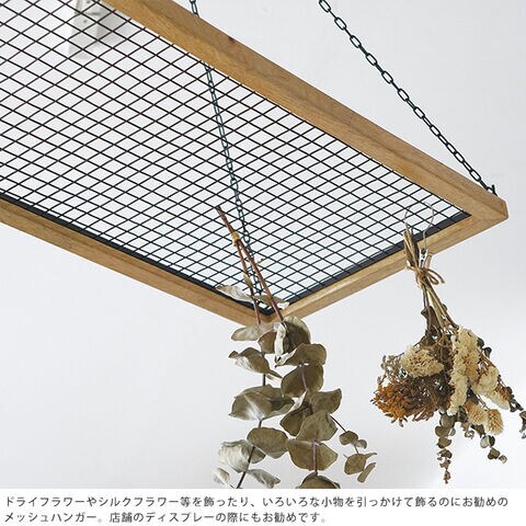 備考:ドライフラワーやシルクフラワー等を飾ったり、いろいろな小物を引っかけて飾るのにお勧めのメッシュハンガー。店舗のディスプレーの際にもお勧めです。