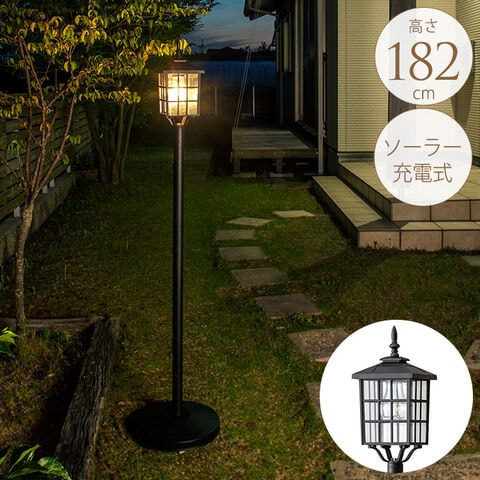 仕様:電源:ソーラー充電 充電池:リチウムイオン充電池(1.2V 2300mAh 単三型2本) LED1球(電球色)