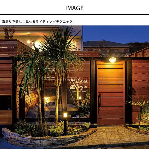 備考:家周りを美しく見せるライティングテクニック!花壇やアプローチなど、光で演出することで夜の景観もガラッと変わり癒されます。影が生み出す奥行感や、壁に灯りだまりを作ることによる空間に奥行感を楽しめます。また、階段脇などの設置によって安全を確保するステップライティングとしてもおすすめです。