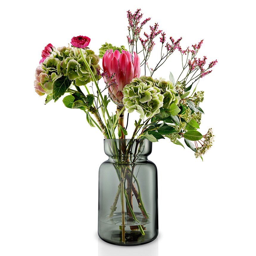 スモーキーな色合いと洗練されたフォルムが印象的で、フラワーアレンジメントはもちろん、水耕栽培の観葉植物、ドライフラワー、フェイクグリーンなど、何を活けてもシックに仕立てられます。