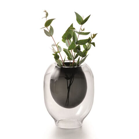 内側に黒いベースが浮遊する中空デザインのこの花瓶は2WAY。どちらを上にしても使用できるので、お花のバランスに合わせてアレンジを楽しめます。お花を飾っていないときには、オブジェのようにインテリアのアクセントにも。