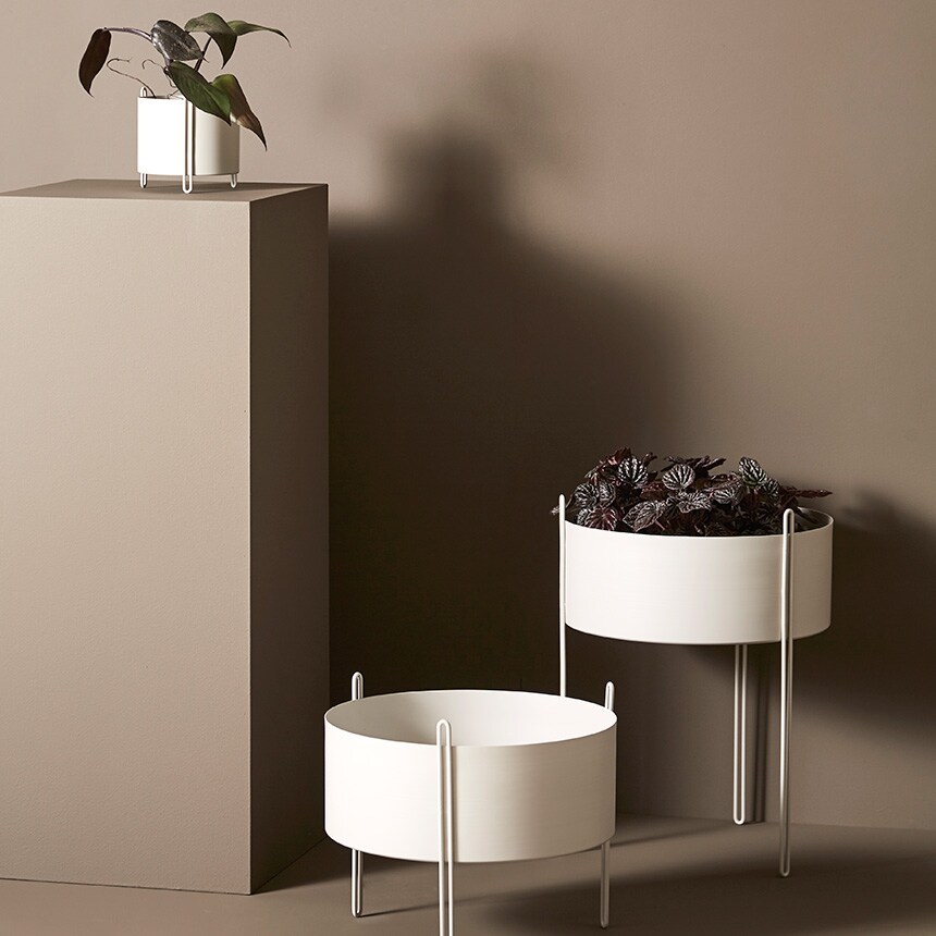 ミニマルなデザインに植物の鮮やかな表情が加わり、エレガントなハーモニーを奏でます。デザイナーのエミリー・スタール・カールセンは、祖母が使っていた古い編みかごに緑の植物を入れていたことにインスピレーションを受け、室内に自然を取り込むデザインを作りたいと考えました。このピデストールを使えば、家の中に緑のオアシスをつくることができます。グリーンや色とりどりの花、家庭で育てたハーブなどを飾ってみてください。