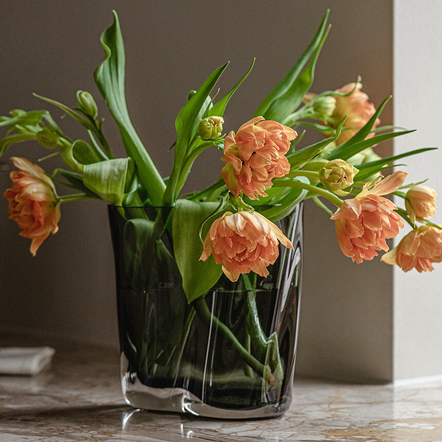 デンマークのデザインカンパニーAudo Copenhagenのフラワーベース「エールベース」。端正なフォルムがフラワーアレンジメントをいっそう華やかに包み込みます。