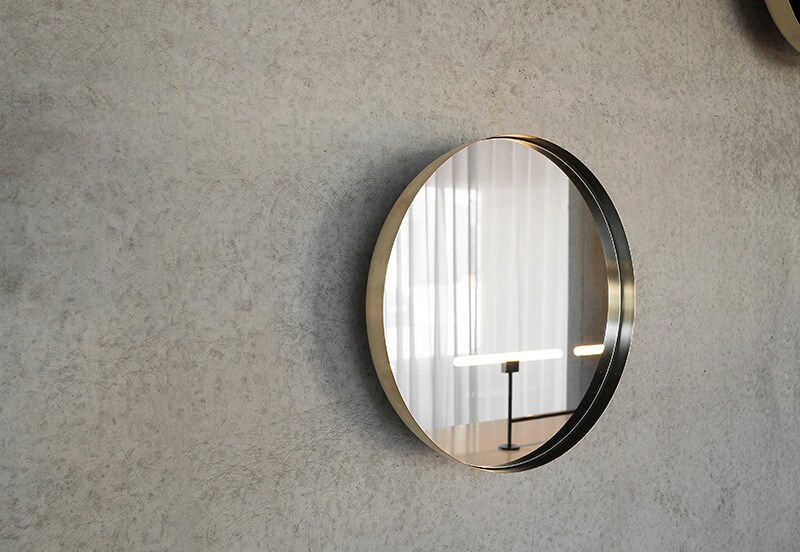 存在感のある洗礼されたデザインの壁掛けミラー。デンマークのデザインカンパニーMENUの手がけるダークリーミラー。古代、人は水面を鏡に見立てていたというところからインスピレーションを受けてデザイン。