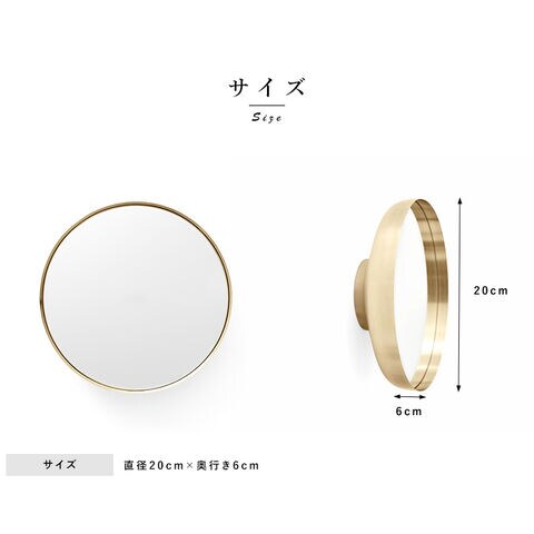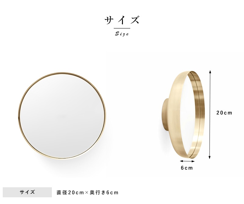 正面からはシンプルなサークルミラーで、側面からはすり鉢状になっていて、角度により表情が異なります。インテリアとしても存在感のあるミラーです。
