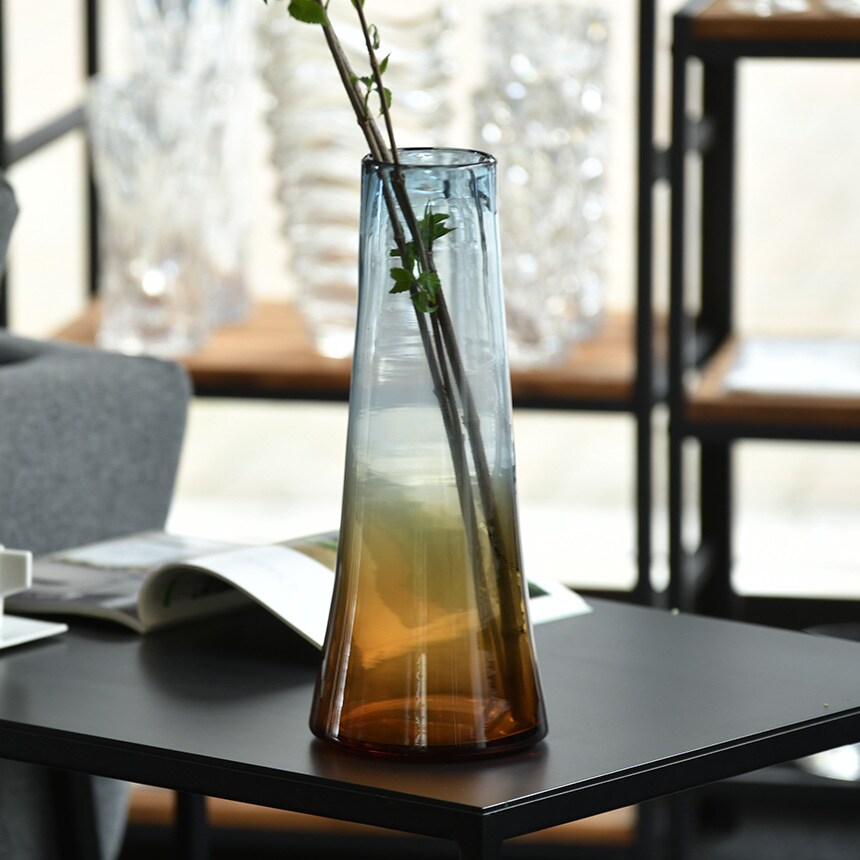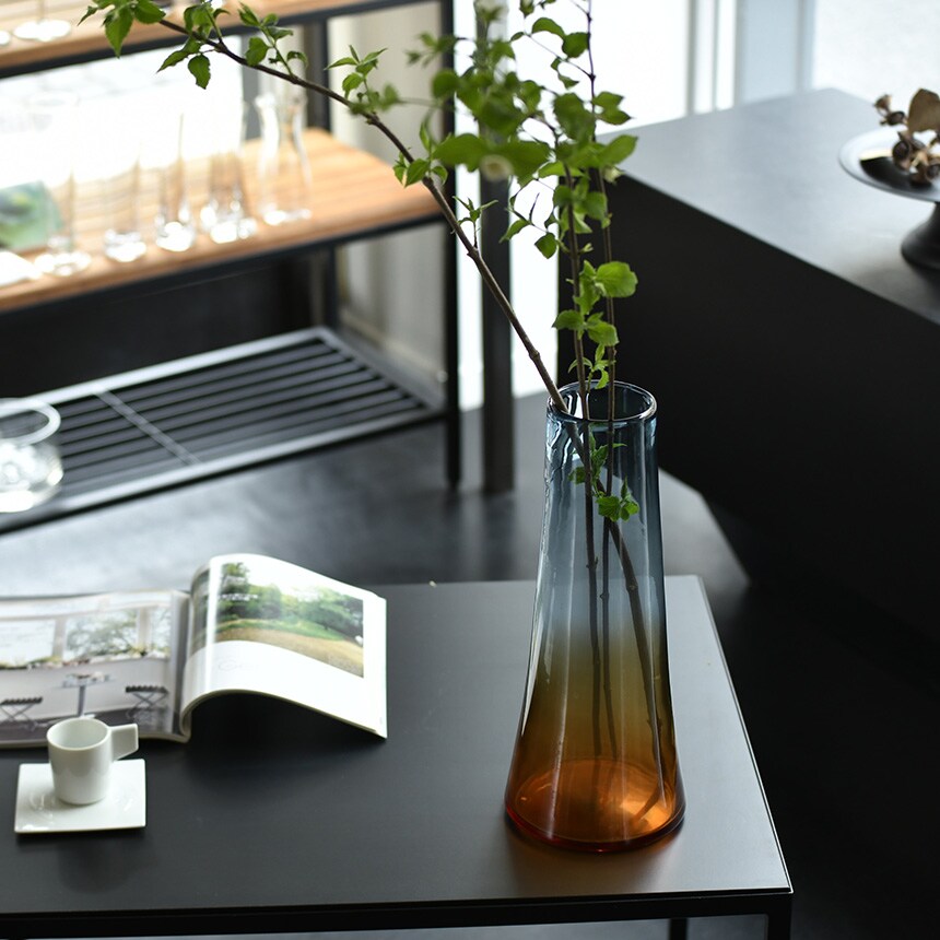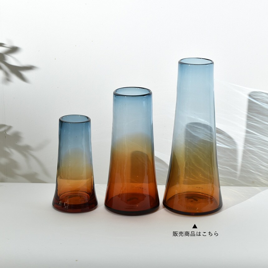 備考:空の色の移り変わりの美しさにインスピレーションされ、イメージしたアイテム。 試作を繰り返して現在の発色に到達しました。 ガラスの生地に色を練り込んでいるため、光に触れると表情を変えるとても繊細でとても美しい花瓶です インテリアオブジェとしてもおすすめです。