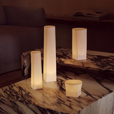 デンマークのデザインカンパニーAudo CopenhagenのLEDライトキャンドル。 磁器素材のボーンチャイナを透過し作り出す、ロウ・炎の出ない美しく優しい灯り。