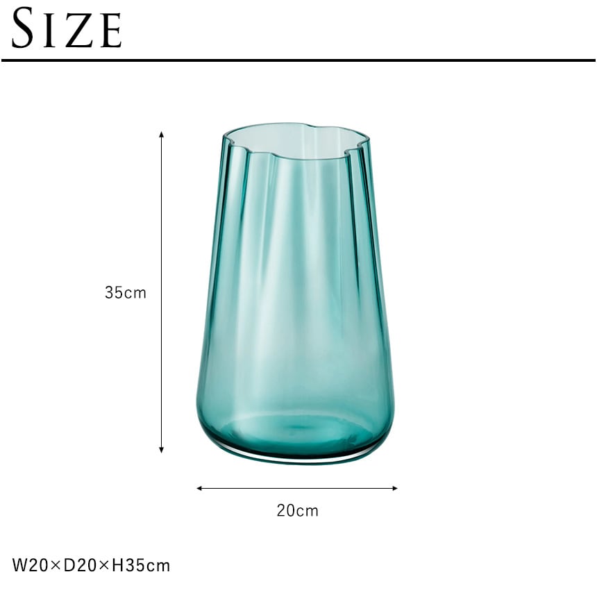 備考:ラグーンを思わせる有機的なフォルムの花瓶・キャンドルホルダー 熟練の吹きガラス職人が特別な金型で成形したフラワーベースです。色に深みを出すために、乳白色とシーグリーン色のガラスを透明ガラスで挟んでマウスブローしています。 緩やかに波打つガラスに花を無造作にアレンジしてお楽しみください。 またキャンドル(別売)を入れて火を灯すと、波間に差し込む光のような炎のゆらめきを感じられます。