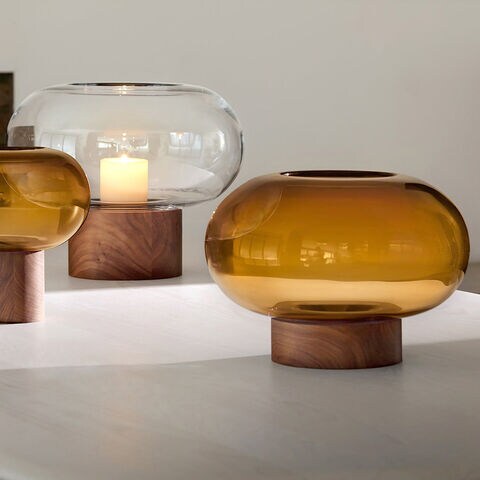 LSA Internationalフラワーベース Oblate オブレート 花瓶 ランタン アンバー H19.5cm