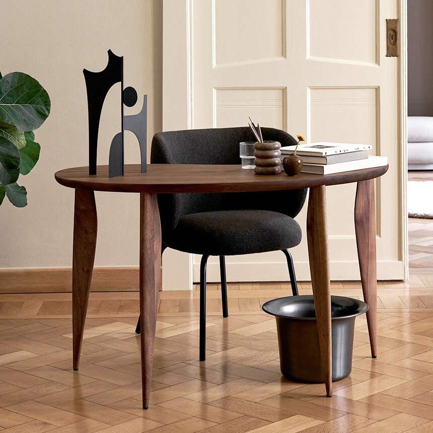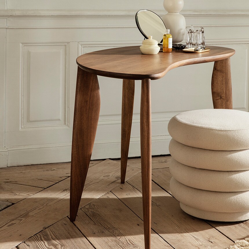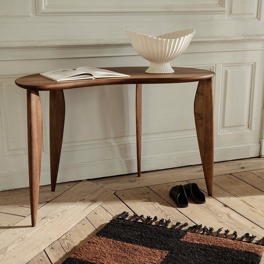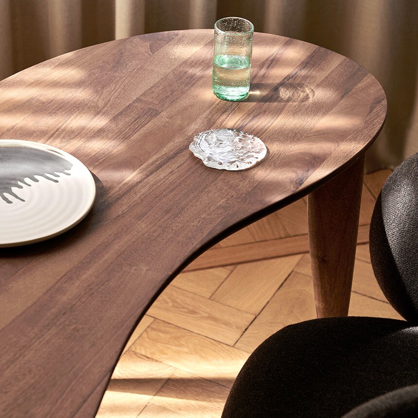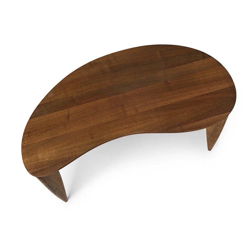 特徴的な天板のフォルムからフランス語で「そら豆」を意味する「Feve」と名づけられた愛くるしい形状のコーヒーテーブル。