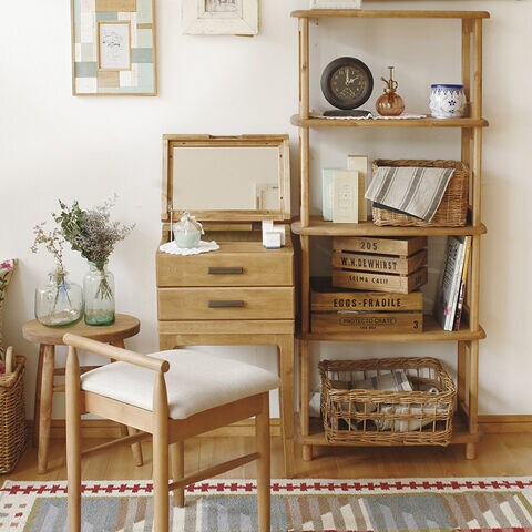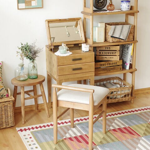 天板裏に1面鏡がついており、天板を開いた状態にするとドレッサーとしてご使用いただけます。