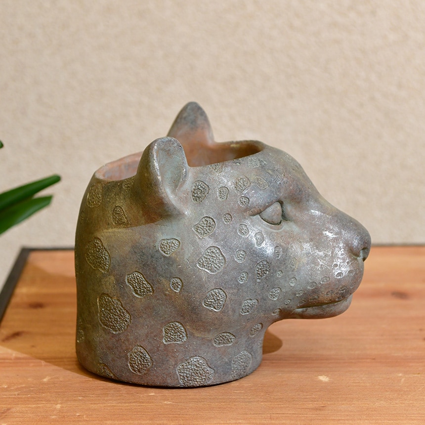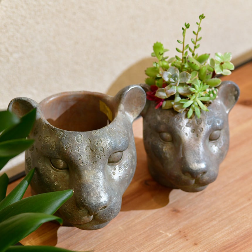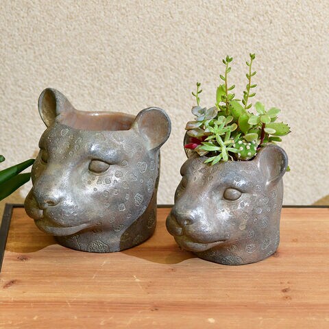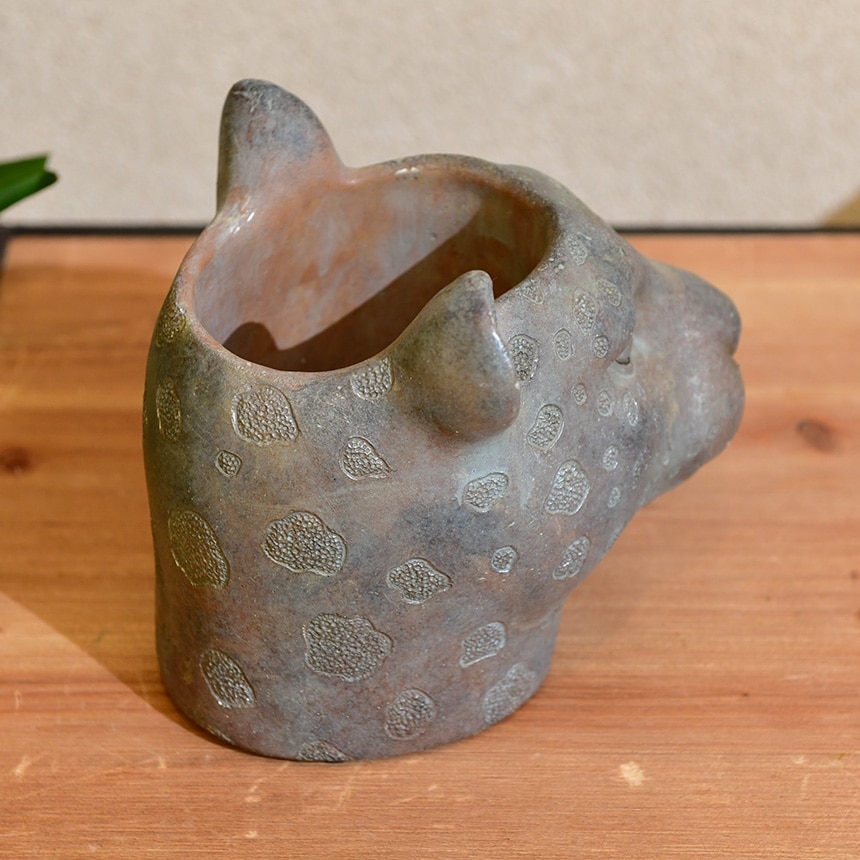 フラワーポット 小型 鉢 アニマルポット レオパード LEOPARD Sサイズ プランター 小さい 小物入れ ペン立て 北欧 オブジェ 飾り ネコ科 ヒョウ