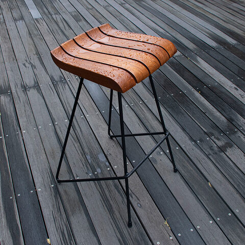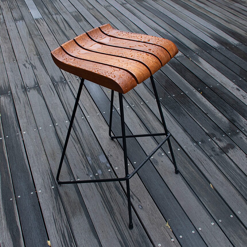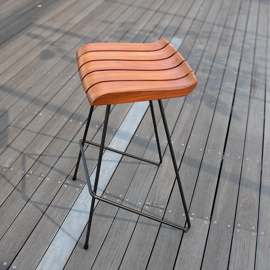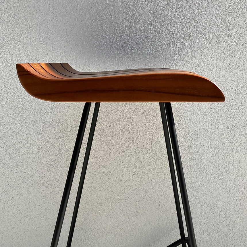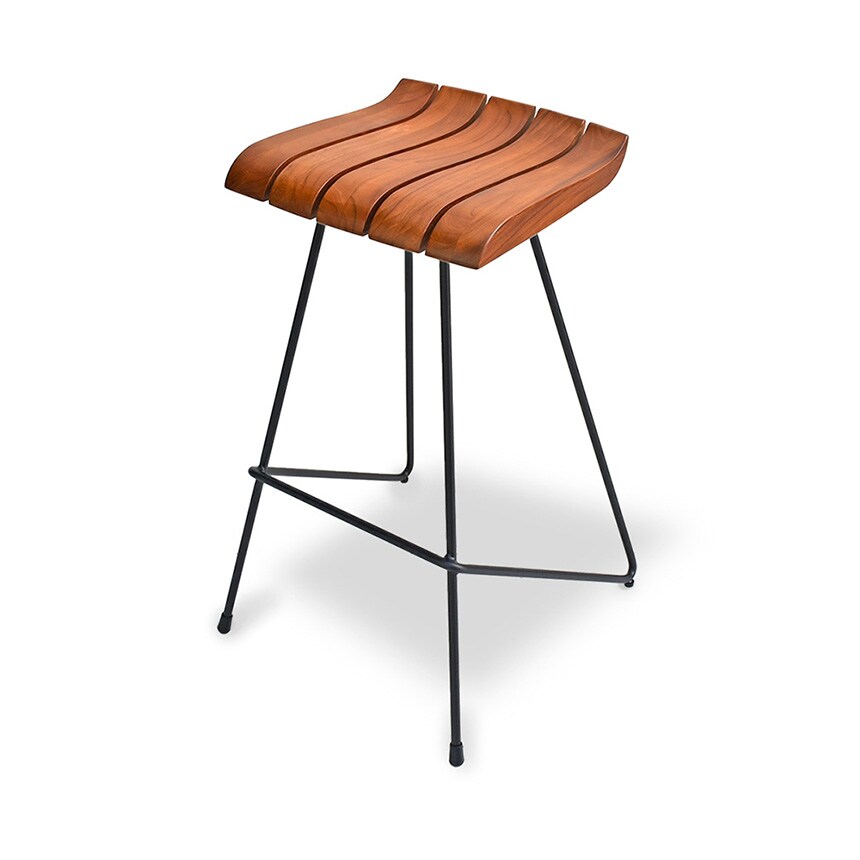 艶感のある天然木のチーク材を使用したインダンストリアルなダイニングスツール。