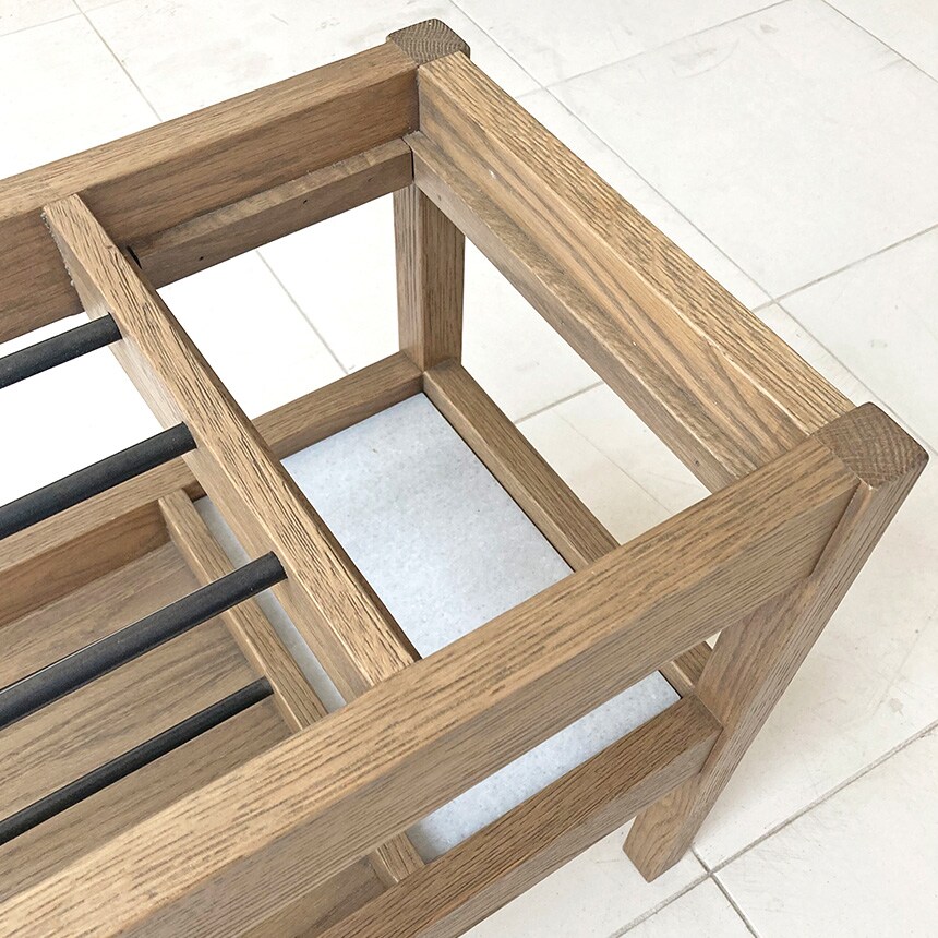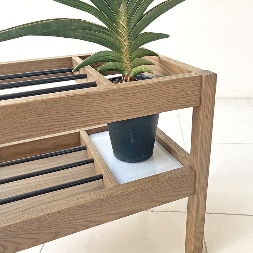 自由なレイアウト 大理石の天板は取り外しが可能です。 背の高い植物、プランターを設置する場合には上の天板を外して写真のように上につきだすことも可能です。 サイドテーブルとして使用する場合には天板はそのままで、台としてご使用いただけます。