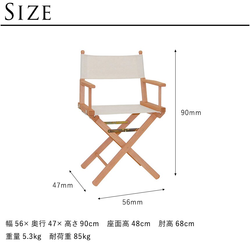 サイズ/重さ:幅56×奥行47×高さ90cm 座面高48cm 肘高68cm 重量5.3kg 耐荷重85kg