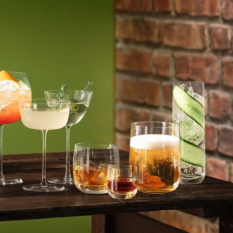耐久性が高いモダンなフォルムのタンブラー ワイングラスからビールグラス、カクテルグラスまで揃った現代的なフォルムのドリンクウェアコレクション。 身近な人々と気軽にコミュニケーションを楽しむ世界的なトレンドにインスパイアされて誕生しました