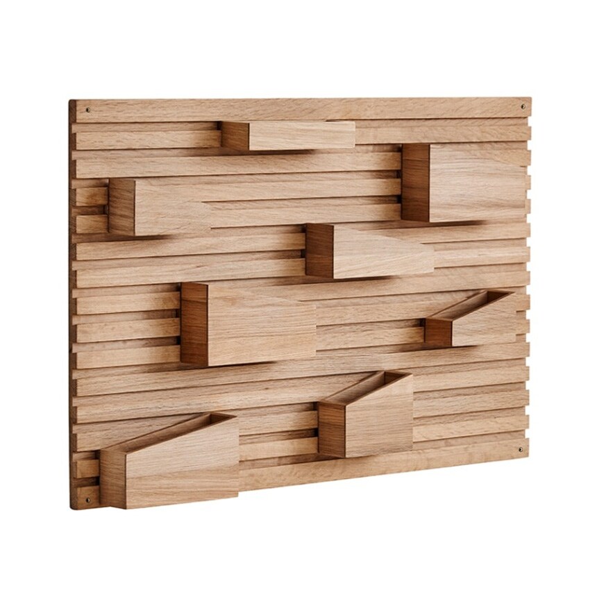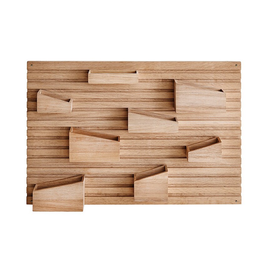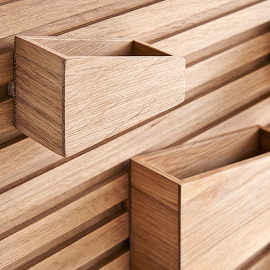 天然木の美しい風合いと、8つのポケットの組み合わせがユニークなキャラクターを空間に与えます。