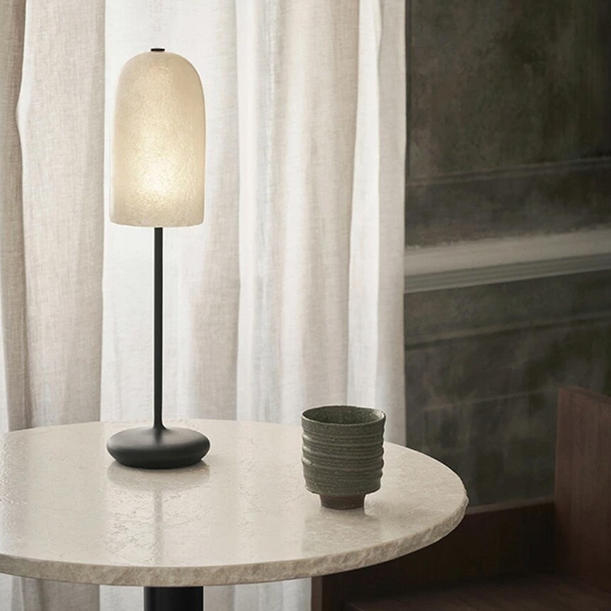 グラスファイバー製のランプシェードは、光をやわらかく拡散し、