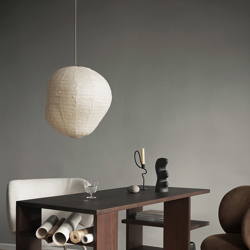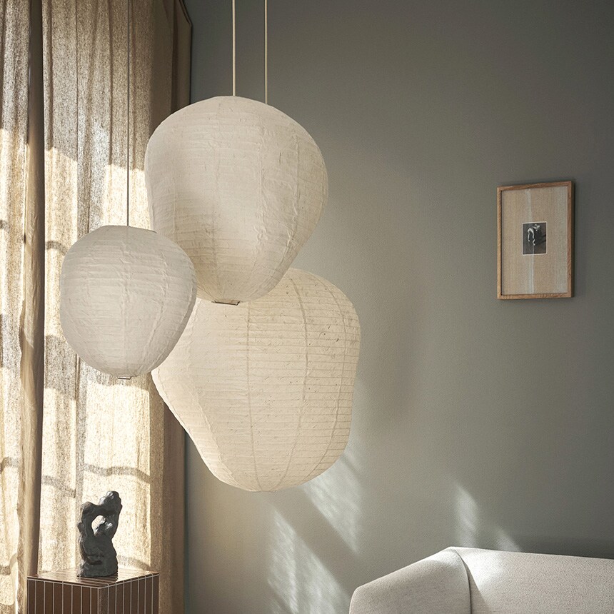 古典的なライスペーパーランタンの伝統を引き継ぎながらも、非対称なシルエットを選ぶことで新しいデザインを提案しています。