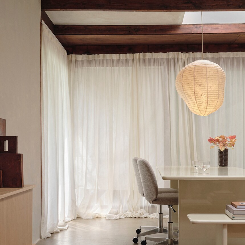 柔らかな光を部屋全体に広げるこのシェードは、北欧テイスト、和モダン、ホテルライクなど、