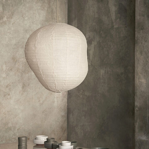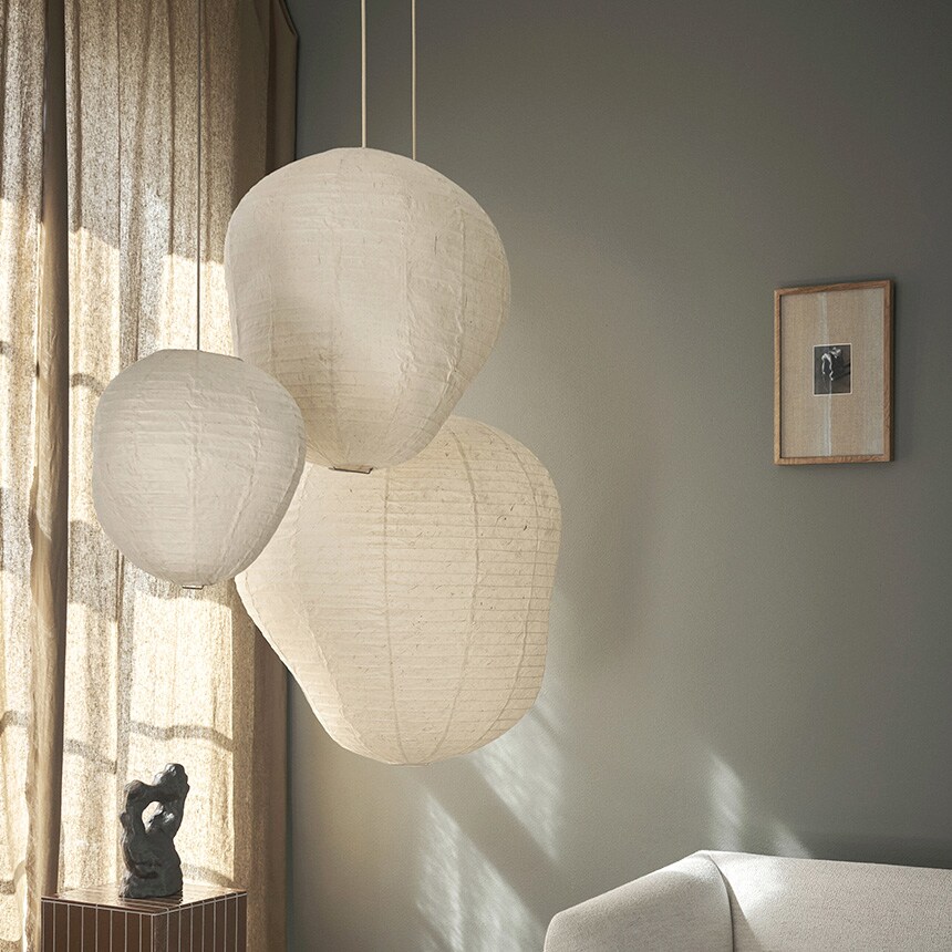 古典的なライスペーパーランタンの伝統を引き継ぎながらも、非対称なシルエットを選ぶことで新しいデザインを提案しています。