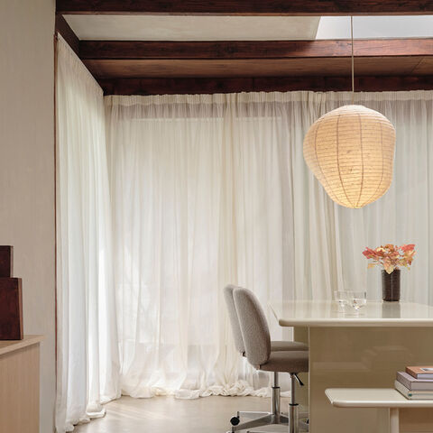 柔らかな光を部屋全体に広げるこのシェードは、北欧テイスト、和モダン、ホテルライクなど、