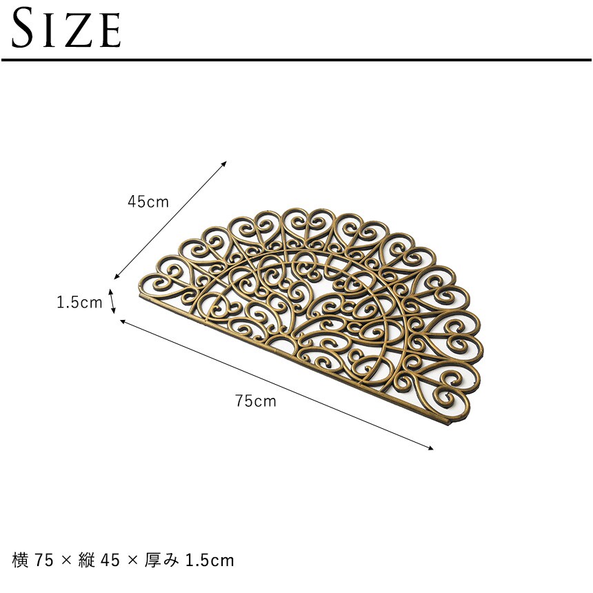 玄関マット 屋外 コイヤーマット おしゃれ イタリア ヴィンテージハーフムーン 幅75cm 玄関 ドアマット おしゃれ ゴム マット 泥除け 泥落とし