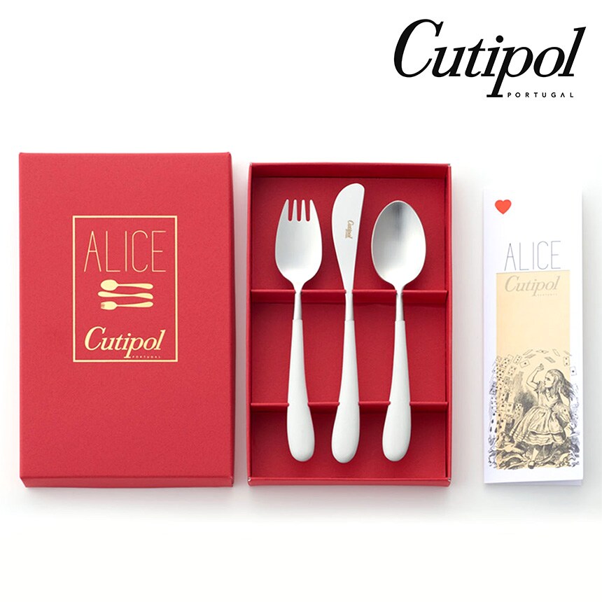 カトラリー セット 正規品 Cutipol クチポール ギフト アリス 3本セット ホワイト×シルバー カトラリーセット キッズ ナイフ フォーク スプーン