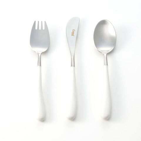 初めてカトラリーを使うお子様向けにデザインされた、安全性とデザイン性を兼ね備えたカトラリーセットです。