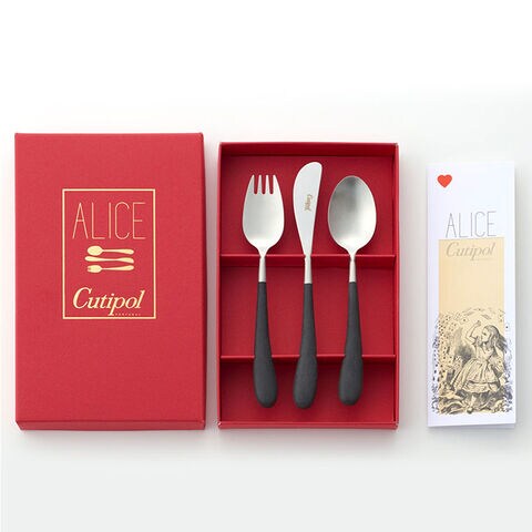 カトラリー セット 正規品 Cutipol クチポール ギフト アリス 3本セット ブラック×シルバー カトラリーセット キッズ ナイフ フォーク スプーン