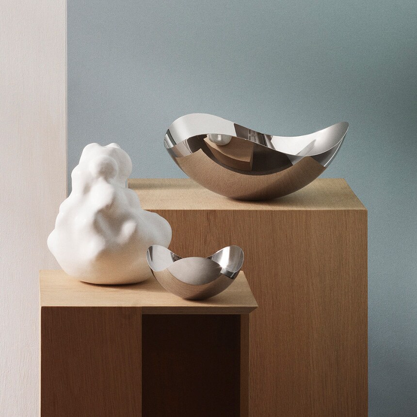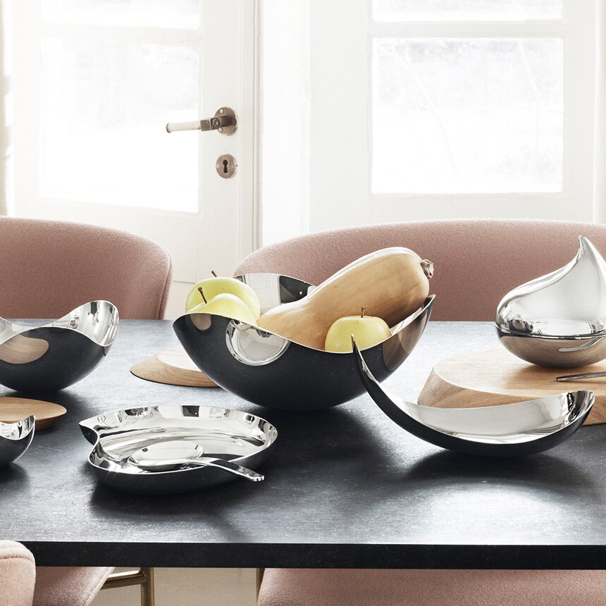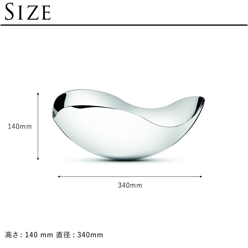 備考:デザイナー、Helle Damkjaer(ヘレ ダンケア)は、満開の桜の花びらの形から着想してデザインしました。 完璧な自然なフォルムの喜びが溢れるようなプロダクト。 ミラー仕上げのステンレスの硬質感とゆるやかなフォルムが美しく調和し、ダイニングやリビングに華やかさを添えてくれます。 サラダやパスタや大皿料理などを盛り付けて食器としてはもちろん、花器として花を活けたり、そのまま置いてオブジェとしてもインテリアピースとしても美しい存在感を放ちます。