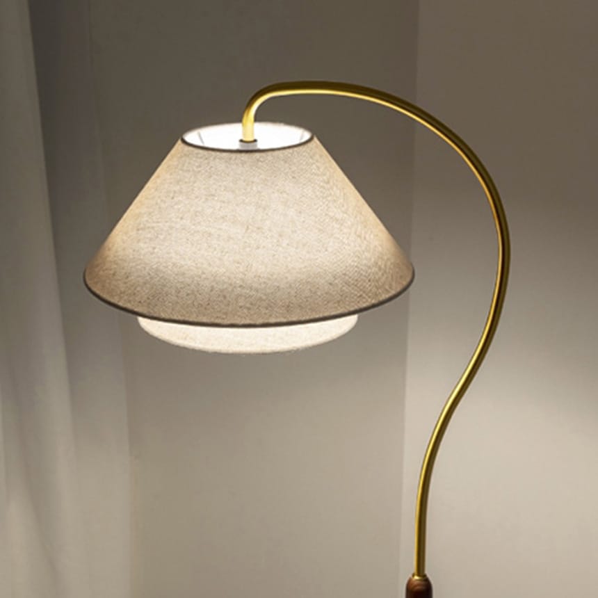 生成り色のファブリック、ゴールド、ウッドの素材バランスを整え、装飾的になりすぎない調和を実現しました。
