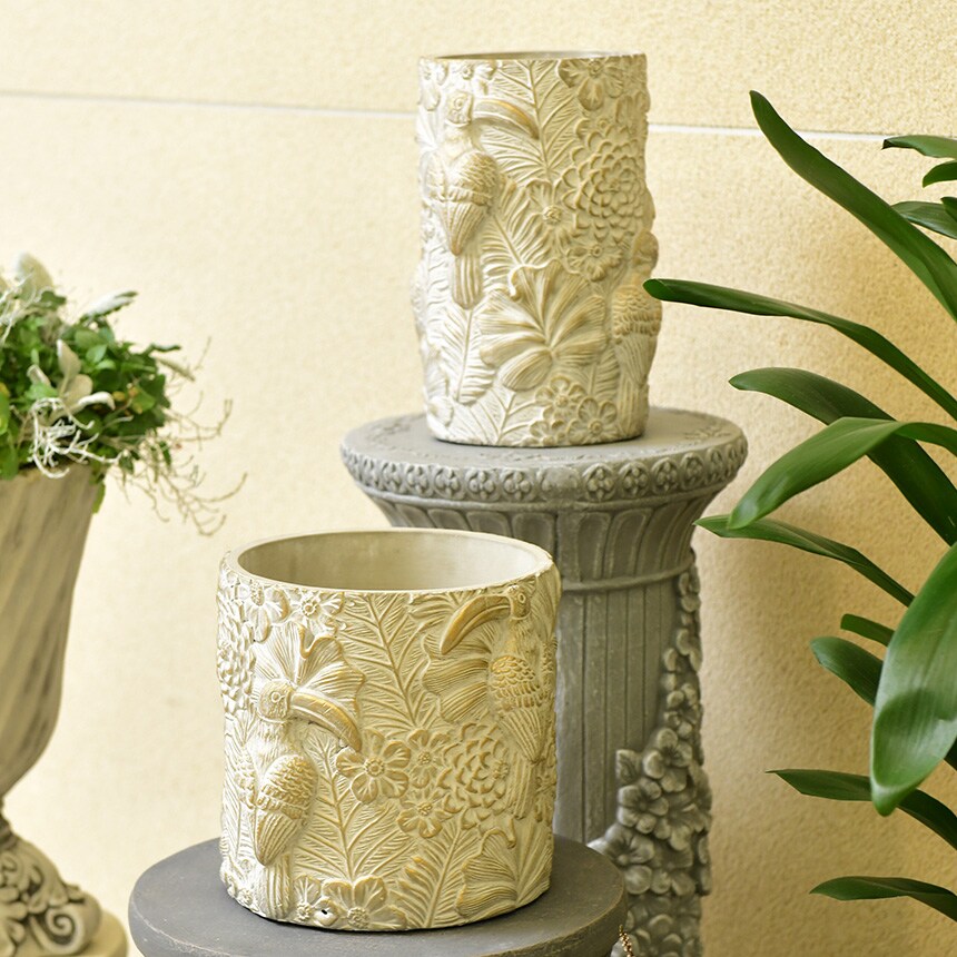 植物もお花もトゥーカンも立体デザインで玄関やリビングに映えるプランターです。