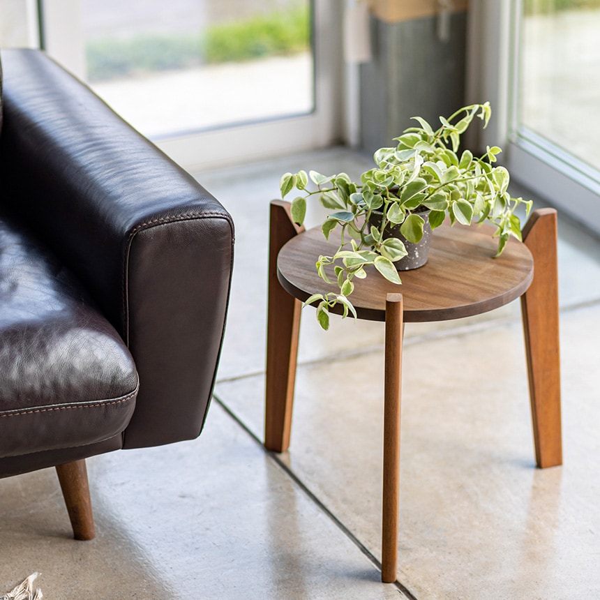 高級感漂うマホガニー材の深みある木目が、北欧テイストのインテリアと調和し、植物のある暮らしをより美しく引き立てます。