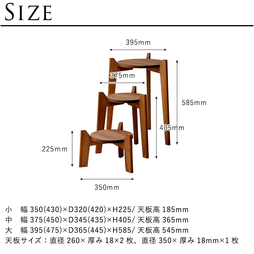 天板サイズ:直径260×厚み18×2枚、直径350×厚み18mm×1枚