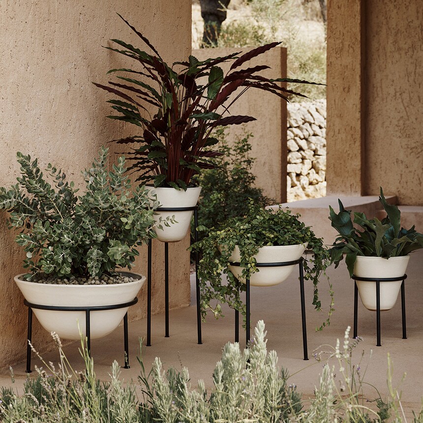 スチールの足に鉢を乗せる仕様です。