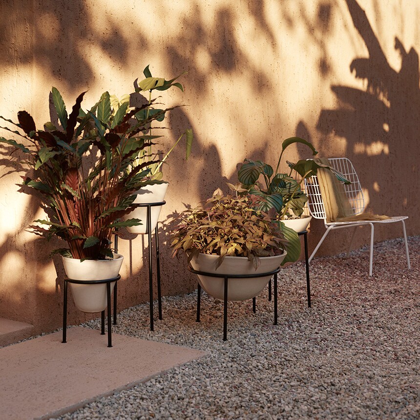 スチールの足に鉢を乗せる仕様です。