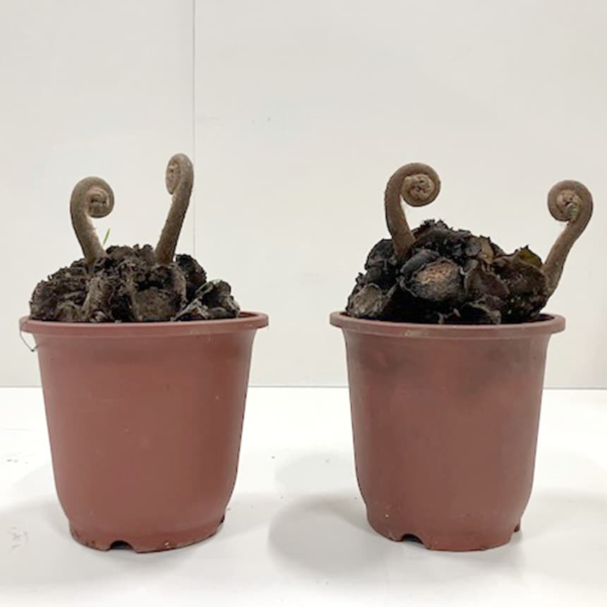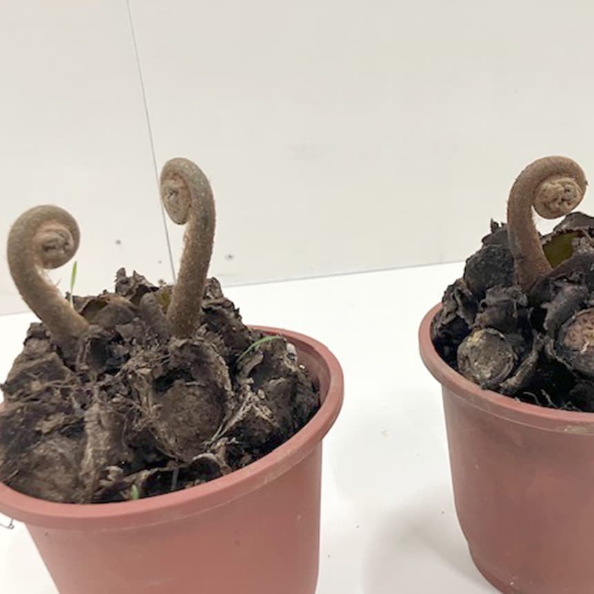 リュウビンタイは、シダ植物ならではの渦を巻いた新芽と羽のように広がる美しい葉姿が特徴です。