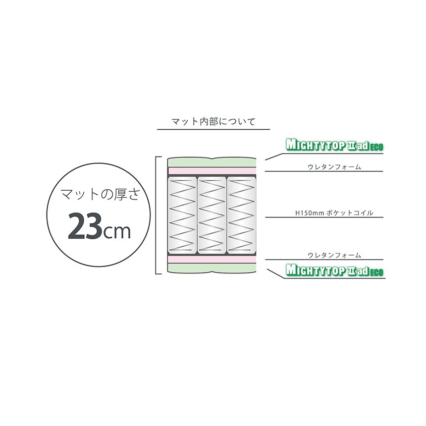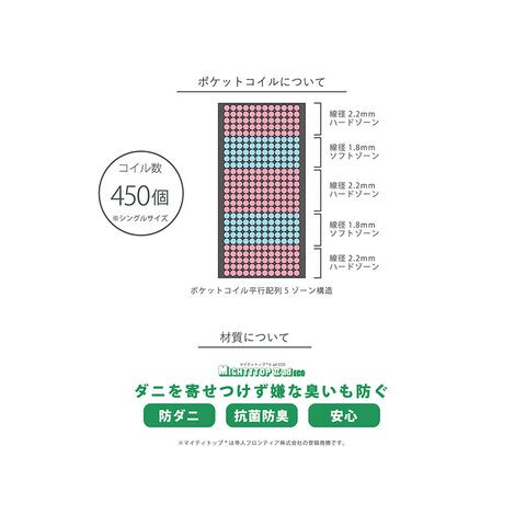 上層部には防ダニ、防臭、抗菌に優れた効果のある帝人のマイティトップを使用。
