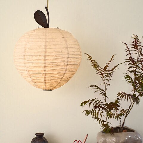 リンゴの形をモチーフにしたやさしい灯り アップルランプシェードは、リンゴのフォルムを独創的にデザインした魅力的な照明器具です。