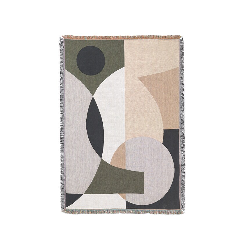 アートとインテリアデザインを融合させた、目を引く抽象的な美学が特徴のブランケットです。