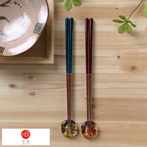 夫婦箸 箸置き おしゃれ 日本製 津軽びいどろ 若狭塗の夫婦箸 びいどろの箸置き セット まつりはなび 箸置き ガラス 結婚祝い