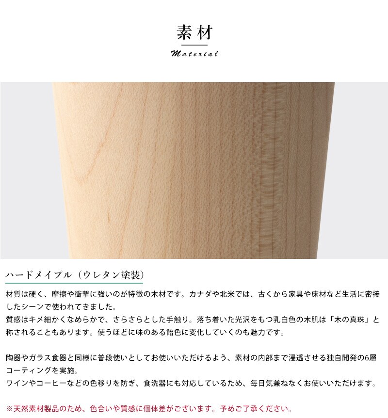 木製 食器 日本製 木製カップ 日本製 軽量 taffeta やさしい口当たり 木製 コップ 中角 ハードメイプル 190ml 天然木 おしゃれ シンプル