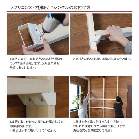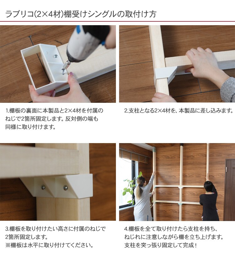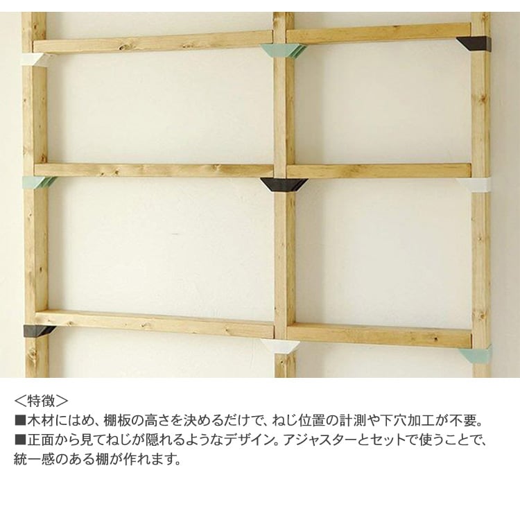 ※この商品は、市販の2x4材を使った突っ張り商品「2x4 アジャスター」専用の棚受けです。(屋内用)